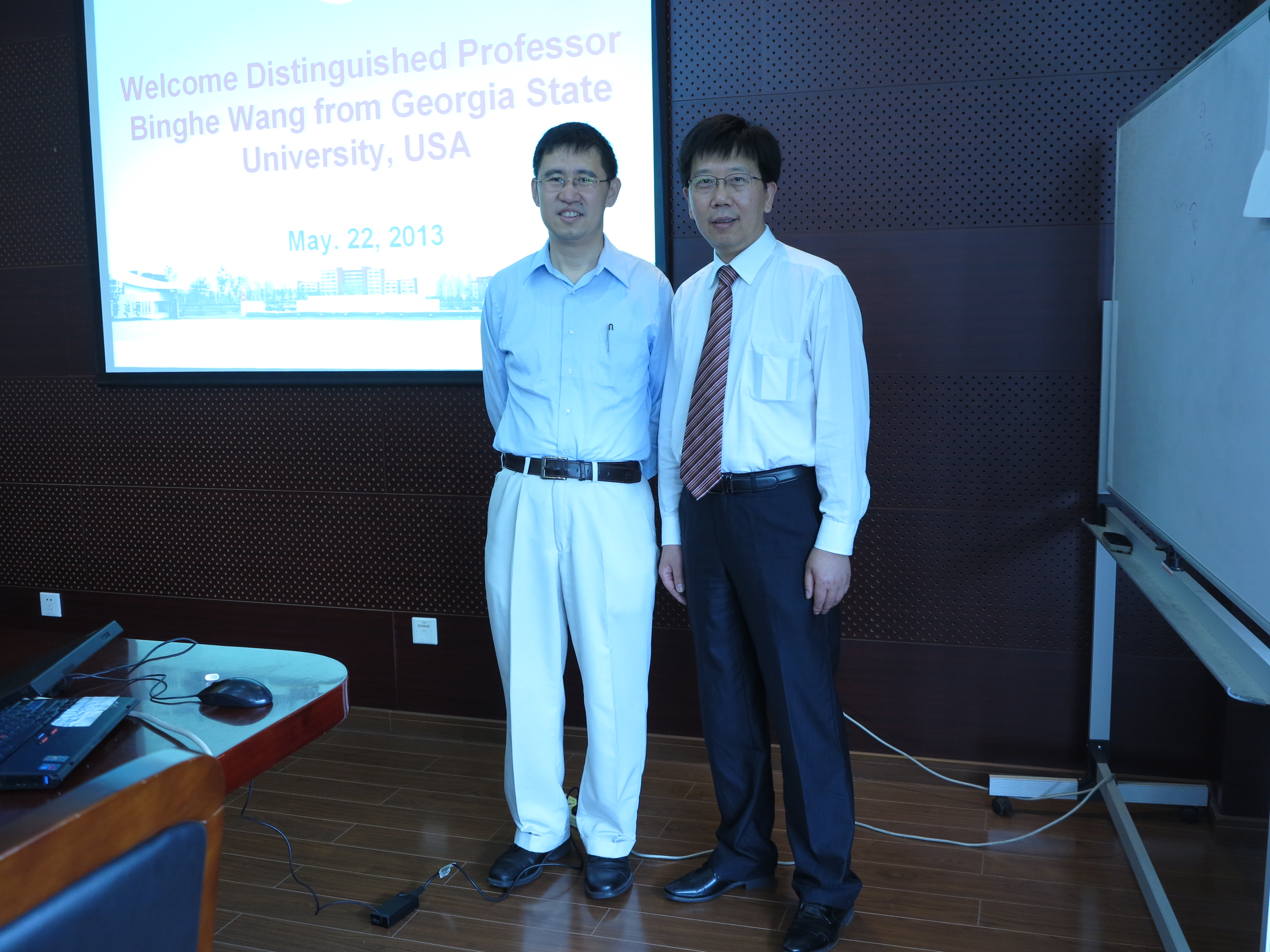 5月22日,美国佐治亚州立大学化学系主任Binghe Wang教授应邀访问威廉希尔,钱旭红董事长与Binghe Wang教授就肿瘤细胞的分子识别、荧光和质谱探针进行了深入探讨和交流。随后,Binghe Wang教授以“Looking for the “Sweet Spot” and pharmacological targets for disease”为题, 就糖生物化学前沿领域,肿瘤细胞表面特征多糖标识物的分子识别及荧光和质谱探针的设计原理并应用于肿瘤诊断做了精彩和风趣的学术报告,钱董事长和与会的师生纷纷提问与Binghe Wang教授进行现场互动。报告会由威廉希尔常务副经理徐玉芳教授主持。