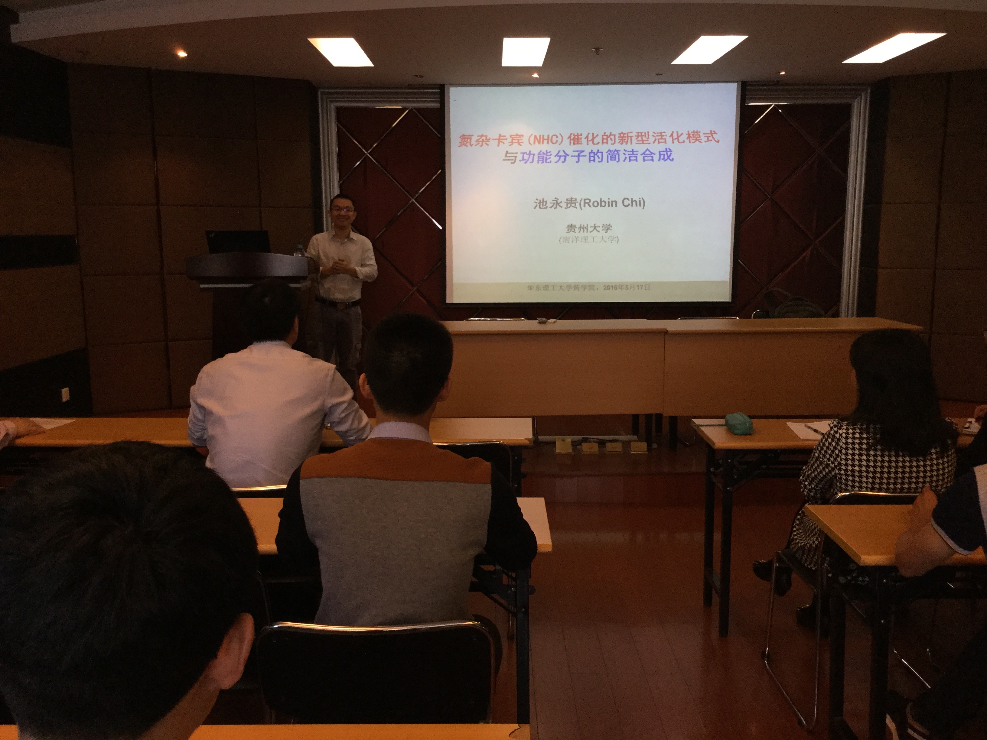 应研究生院和威廉希尔邀请,教育部*特聘教授(2014),贵州大学池永贵教授做客名师讲坛,于5月17日为williamhill官网师生作了题为“New Basic Activation Modes Enabled by Carbene Organic Catalysts and Rapid Synthesis of Functional Molecules”的学术报告。本次名师讲坛由威廉希尔副经理邓卫平教授主持,叶金星、杨有军、杨友等教授出席。
