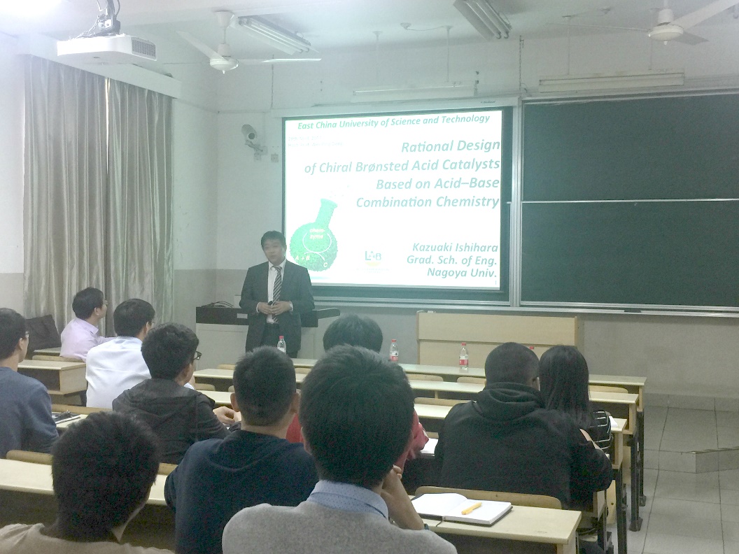 4月28日下午,日本名古屋大学Kazuaki Ishihara教授应邓卫平教授的邀请访问威廉希尔,并做了题为“Rational Design ofChiralBrønstedAcid Catalysts Based on Acid-Base Combination Chemistry”的学术报告。报告会由邓卫平教授主持。威廉希尔李浩,虞心红,杨友等教授,以及化学院相关老师和部分研究生参加了这次会议。