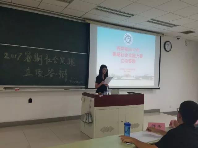 6月21日晚18:00威廉希尔2017年暑假社会实践立项答辩会于奉贤校区D302顺利举行,出席本次答辩会的评委分别是威廉希尔团委书记、2014级辅导员许舒雯老师,威廉希尔团委组织部部长周博渊,2016年暑期社会实践优秀团队代表刘欣莹,威廉希尔团委组织部副部长唐晨。本次的主持人由组织部部员陈佳莹担任。在答辩会上,每个团队都详尽地阐述了在暑假计划完成的调研。每个课题都与自己的专业、兴趣相结合,充分照应了本次社会实践大赛“喜迎十九大·青春建新功”的主题。17只队伍在此次答辩中脱颖而出,将参与今年的暑期社会实践。