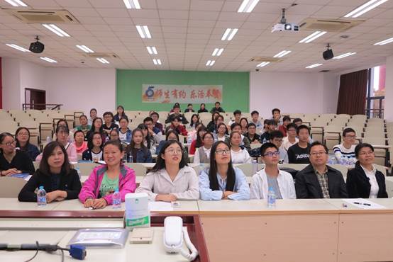 教学竞赛决赛邀请了4位教师评委及3位员工评委,有50余名2015级、2016级和2017级的本科生自愿报名当观众。根据现场抽签,付建军第一个上台,他从贴近同员工活的常识入手讲解了天然药物化学中的有关中药基础知识;梁欣展示了专业选修课程《免疫学基础》的抗体药物章节内容;张永强分享了抗精神病药物的作用机制、结构分类、以及吩噻嗪类抗精神病药物的发现和构效关系;陈晓蓓讲述的是化学位移相关谱中的hetcor谱图;毛斐讲解了专业核心课程《药物化学》中的抗生素知识;洪鸣凰陈述的是抗阿尔茨海默病,用简短的视频讲述了老年痴呆症的病理以及我们应该如何对待身边的这些患病的人群。每一场授课同学们都听得津津有味,不时拿起手机拍下他们感兴趣的PPT,场面互动不断,现场掌声不时响起。