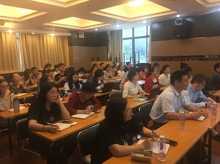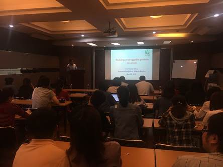 在报告中,杨财广以“尚无药物可及的蛋白”为切入点,向同学们传达了他的科研思路:不要弯道超车,要学会换道超车。关注那些没有成药的蛋白,以化学为工具,现有的表观遗传学为基础,研究开发新药。他以自己做的两个课题:FTO蛋白去甲基化抑制剂和PTEN磷酸化抑制剂为例,讲述了自己的科研之路,贯穿了他对新药研发独特的思考和化员工物学工具的合理应用,引起了在座教师和研究生们浓厚的兴趣,也给员工们的科研思维和研究方法带来了全新的理念,报告赢得了与会师生多次热烈的掌声。