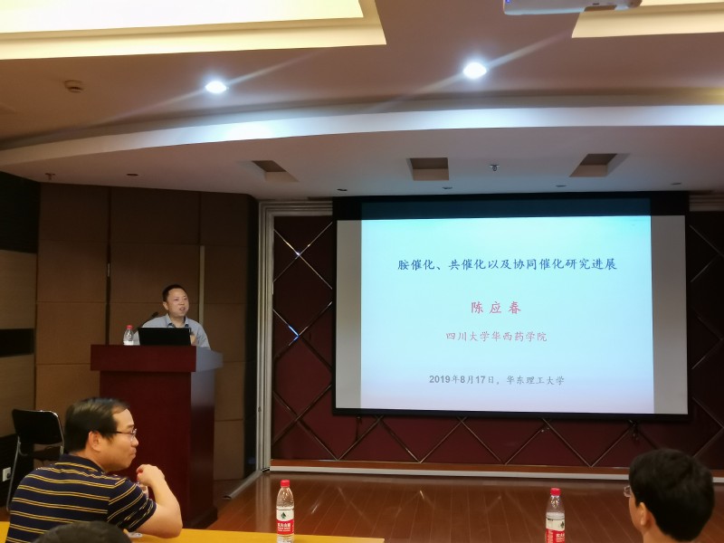 应威廉希尔副经理邓卫平教授邀请,国家杰出青年科学基金获得者(2011)、四川大学华西威廉希尔教授,博士生导师陈应春教授,于8月17日上午为williamhill官网师生做了题为“胺催化、共催化以及协同催化研究进展”的名师讲坛学术报告。报告会由邓卫平主持。