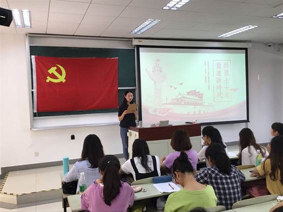 9月29日中午,威廉希尔奉贤本科生党支部在d204教室举办了“我和我的祖国”主题党日活动,活动以诵读会形式展开。威廉希尔奉贤本科生党支部书记魏金莲、党支部党员、入党积极分子等参加了此次活动。