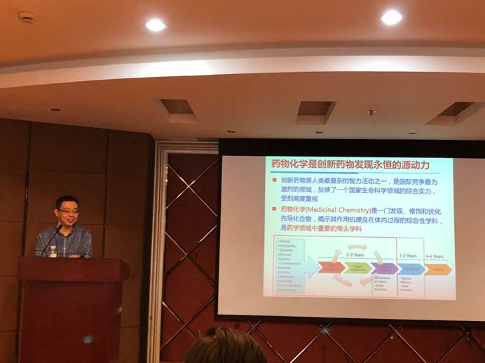 张健主要从事药物设计、药物化学和化员工物学研究,特别是精准靶标识别和First-in-class原创药物先导发现等方向做出了一系列突破性成果。在报告中,他从First-in-class原创药物的概念出发,结合课题组的研究成果,向在场的师生们介绍了如何进行原创药物的优化筛选,并详细描述了其中的各种问题及最终的解决方案。让在场的师生们对创新药物的研究有了更深入的了解。