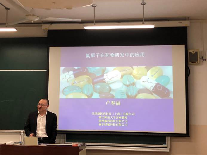 应威廉希尔邀请,上海艾琪康医药科技有限公司总裁卢寿福博士于10月25日15:30在七教101为威廉希尔和化学院师生做了题为“氟原子在药物研发中的应用”的学术报告。报告会由邓卫平教授主持。