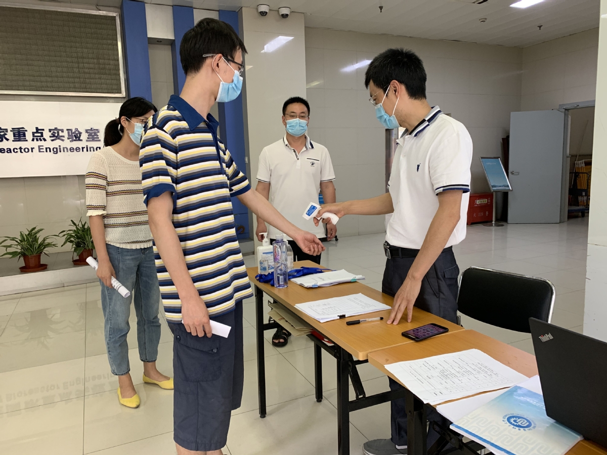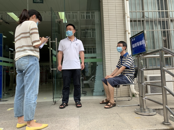 本次应急演练模拟了员工在实验室发生体温异常的突发状况。发现员工温异常(>37.3 ℃),第一时间报告导师和辅导员,并在导师和辅导员的陪同下,从应急楼梯到达学院设定的体温监测点。学院志愿者老师对发热员工进行体温复测,员工在等候区休息。如确认员工体温仍然异常,导师和辅导员陪同该生前往校医院进一步检测。同时,辅导员将员工情况上报给公司党委副书记,由副书记将员工情况通报给学院疫情防控领导小组组长。
