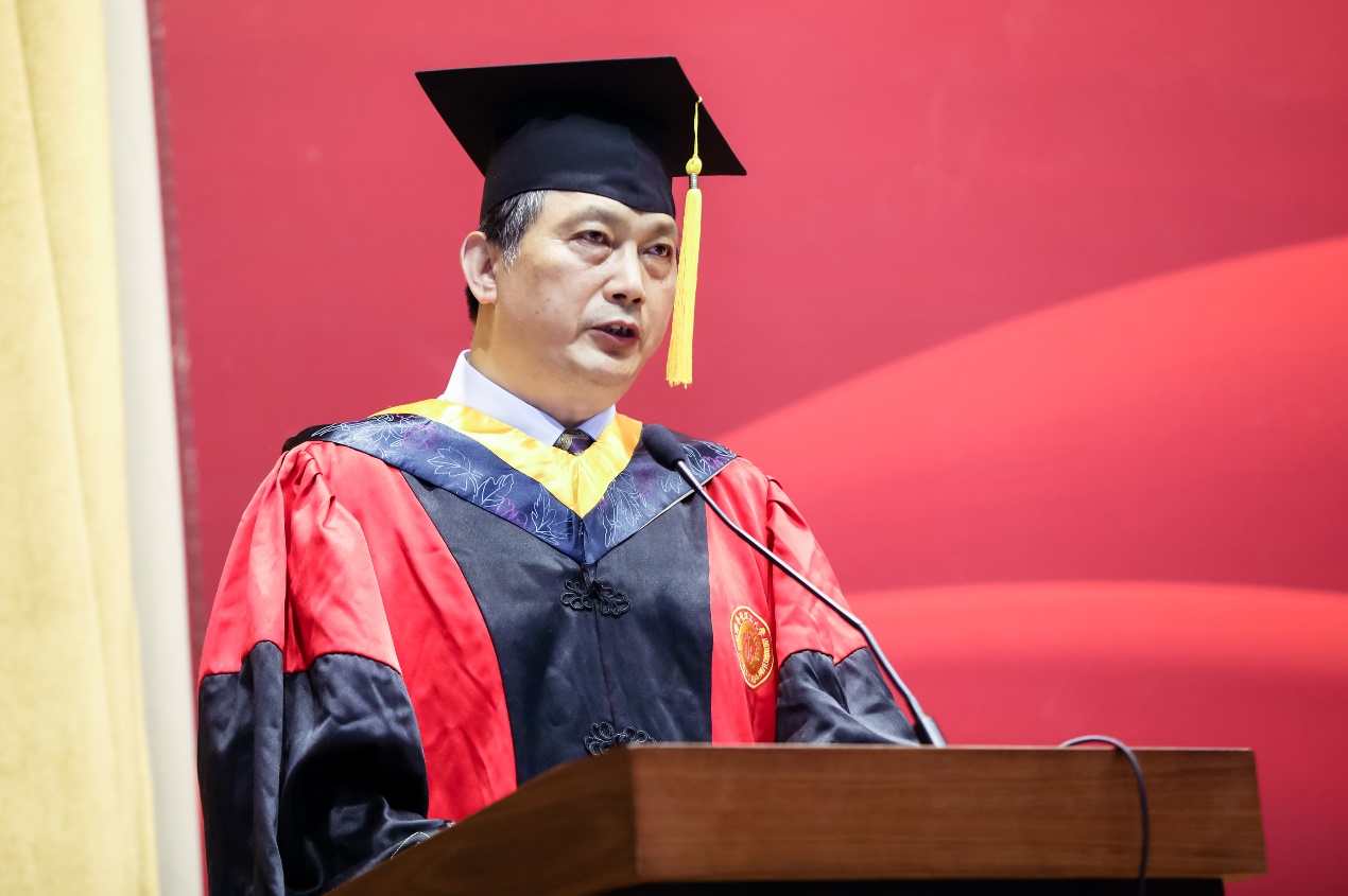 宋恭华祝贺同学们顺利毕业并勉励2020届毕业生,虽然疫情给即将走向新的学习工作岗位的同学们更大考验,但希望同学们离开校园后继续秉承“勤奋求实、励志明德”的校训,在以后的人生道路上,始终保持积极进取的心态,不畏逆境,不忘初心,祝愿全体2020届毕业生圆梦未来,希望同学们常回母校看看。