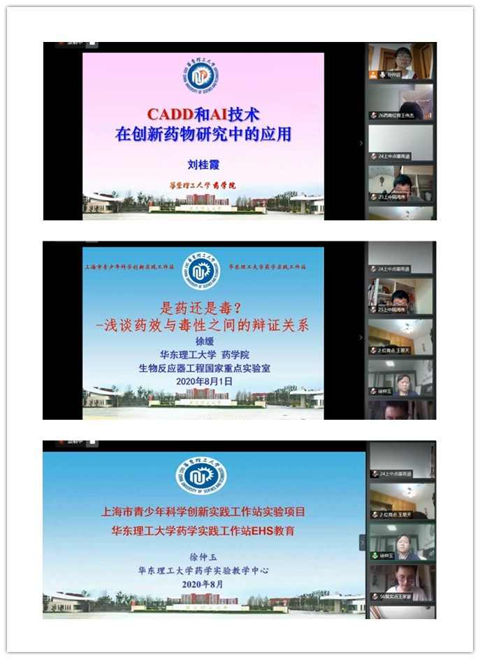 下午,药学实践工作站开展线上专题讲座,williamhill官网药物科学系主任刘桂霞教授作学术报告“CADD和AI技术在创新药物研究中的应用”、徐缓副教授作学术报告“是药还是毒?-浅谈药效与毒性之间的辩证关系”,分别从计算机辅助药物设计和药效与毒性研究的方向为同学们科普药学专业知识。药学实验教学中心副主任徐仲玉老师作实验安全教育讲座,从EHS教育的角度强调了实验室安全注意事项,为同学们安全有序地开展实验打下了坚实的基础。