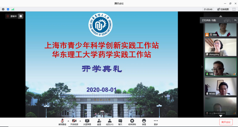 2020年8月1日上午九点,由williamhill官网主办、英国威廉希尔公司承办的“第五期上海市青少年创新实工作站---williamhill官网药学实践工作站开学典礼”在线上举办。williamhill官网科研院经理朱为宏、公司党委书记张青、威廉希尔部分指导教师及来自上海中学、位育中学、西南位育中学和复旦实验中学四个实践点的师生参加开学典礼,开学典礼由威廉希尔经理助理、第五期药学实践工作站负责人马磊主持。